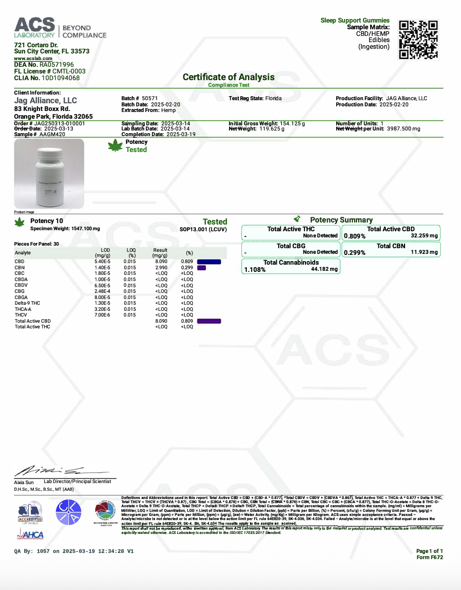 Vegan friendly Sleep Gummies with 10mg of CBN, 25mg of CBD, 50mg of L-Theanine, 50mg of Passion Flower and a combination of natural ingredients.